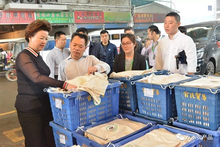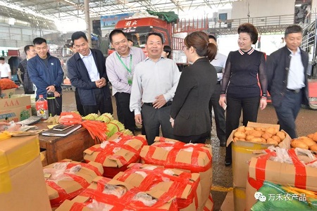 (桂林市政府副市長黃加才一行領導與萬禾副總經理李小濱在市場走訪調查)
