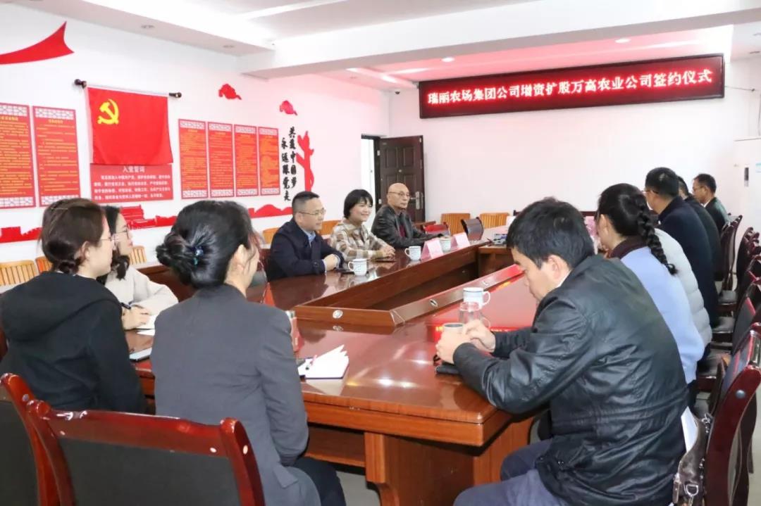 ▲瑞麗農(nóng)場(chǎng)集團(tuán)增資擴(kuò)股萬(wàn)高農(nóng)業(yè)公司簽約儀式現(xiàn)場(chǎng)