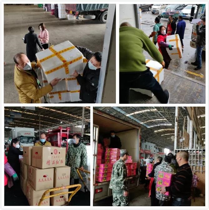 ▲萬禾公司和五里店市場經營戶們向一線醫務人員捐贈果蔬物資