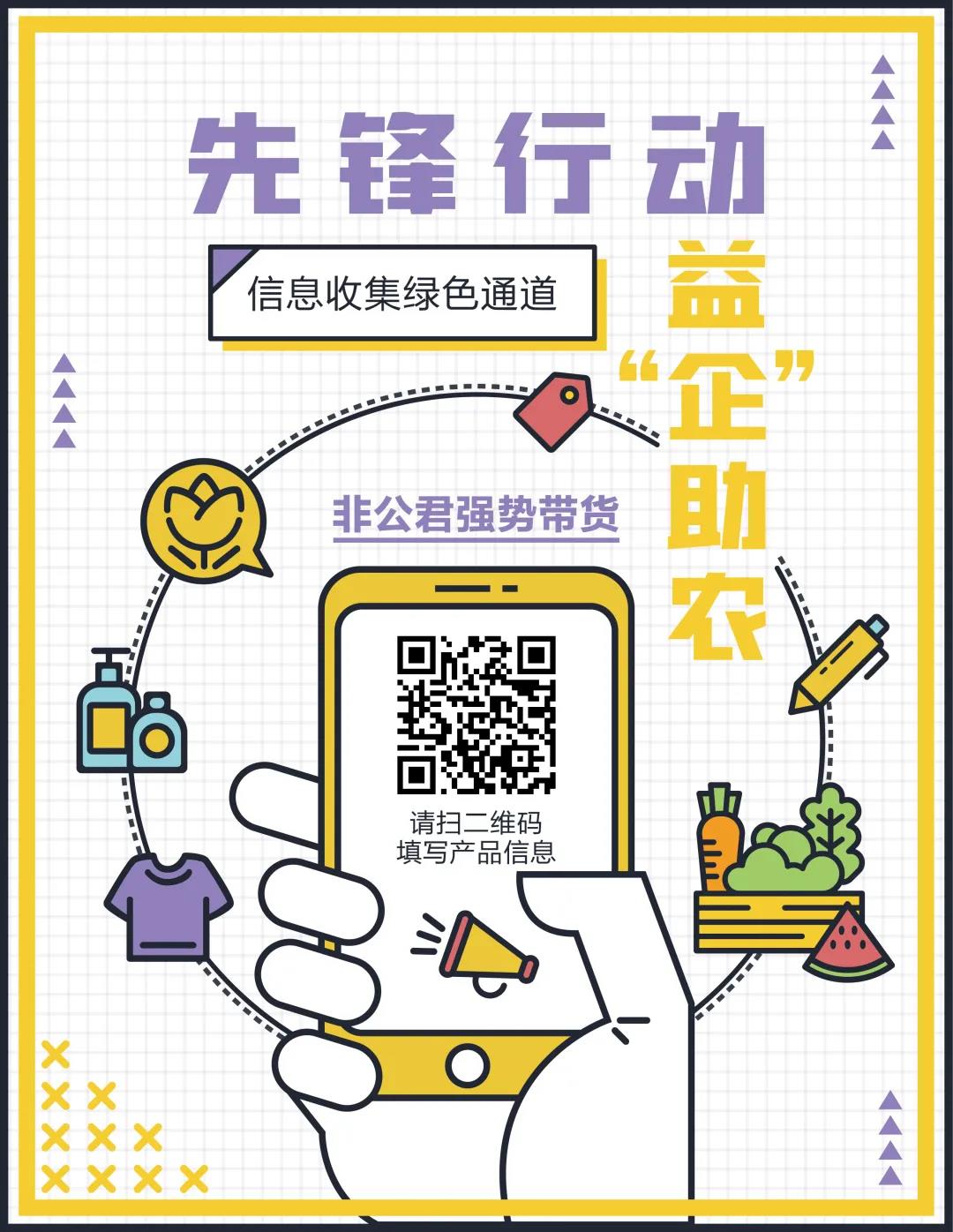 為征集滯銷求助信息,對接更多滯銷產品,請全國各級兩新組織以企業或政府部門為單位,掃描下圖海報中的二維碼,填寫相關信息報名,我們將通過非公君全國平臺,一起幫助大家渡過難關!