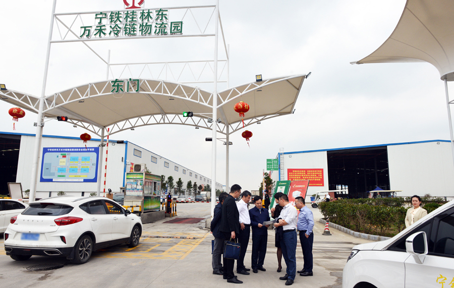 3月18日下午,南寧鐵路局副局長楊燁,廣西寧鐵物資工業有限公司黨委書記、董事長石小東,廣西寧鐵物資工業有限公司桂林分公司總經理陸泉州,南寧鐵路局開發處處長鄧順秋等赴寧鐵桂林東萬禾冷鏈物流園,考察寧鐵桂林東萬禾冷鏈物流園三期功能配套建設相關工作,桂林萬禾農產品有限公司黨總支書記、總經理崔萌佳隨行講解。