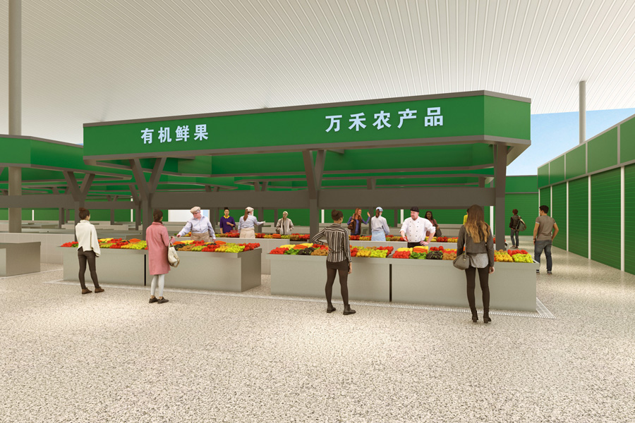 為解決周邊流動(dòng)攤販的經(jīng)營問題,市場設(shè)立大型集市 區(qū)、夜市區(qū)及餐飲區(qū),規(guī)劃近千商位,可安置過千個(gè) 就業(yè)崗位,為服務(wù)區(qū)內(nèi)的城市配送公司提供一站式采 購平臺(tái)。