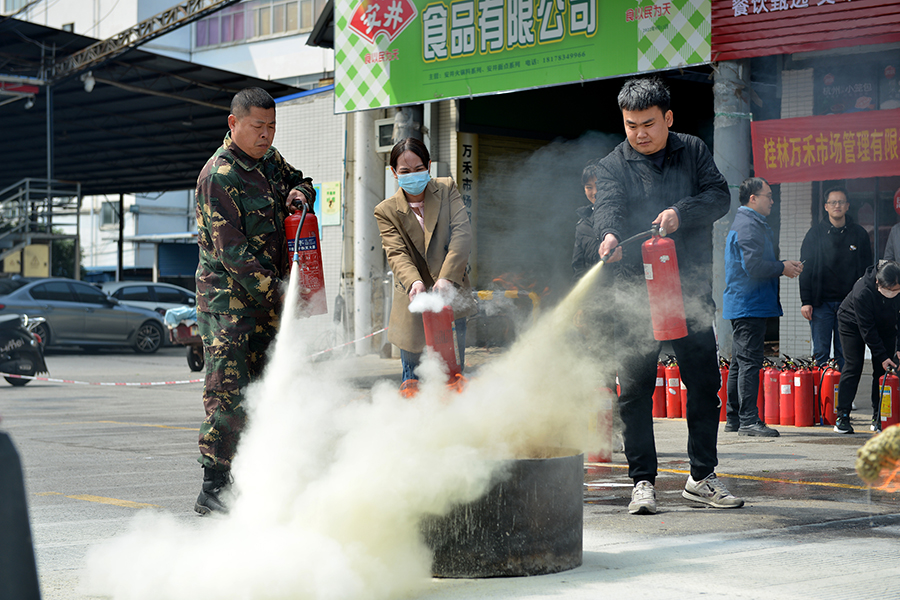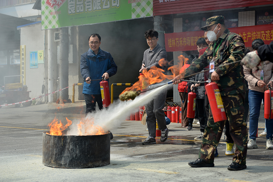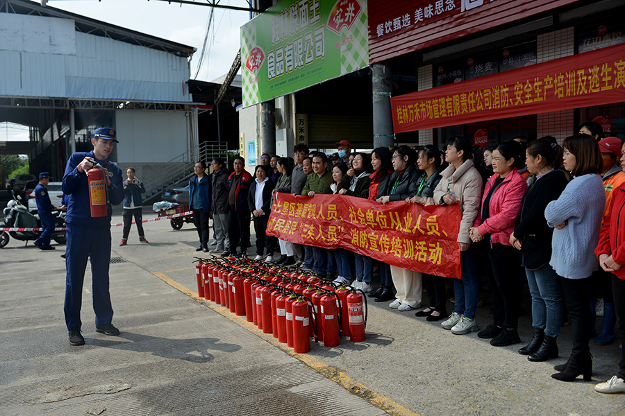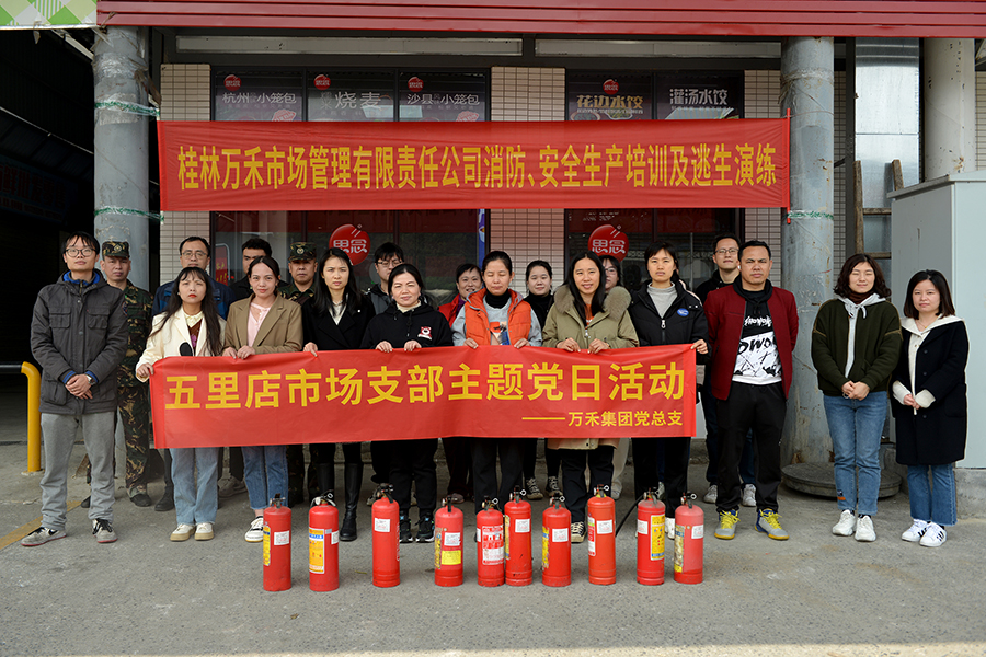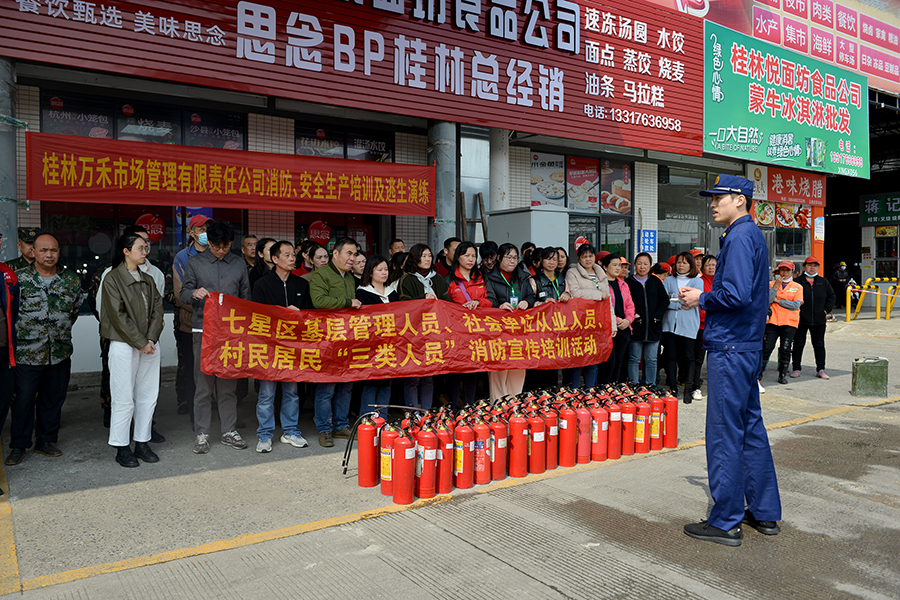 為增強(qiáng)黨員干部及市場(chǎng)經(jīng)營(yíng)戶消防安全意識(shí),有效掌握防火、滅火應(yīng)急處置能力,4月25日,萬(wàn)禾集團(tuán)五里店市場(chǎng)支部組織黨員干部及市場(chǎng)經(jīng)營(yíng)戶在五里店果蔬批發(fā)市場(chǎng)開(kāi)展“增強(qiáng)消防意識(shí),筑牢安全防線”主題黨日活動(dòng),桂林市七星消防隊(duì)?wèi)?yīng)邀到場(chǎng)進(jìn)行消防安全培訓(xùn)。