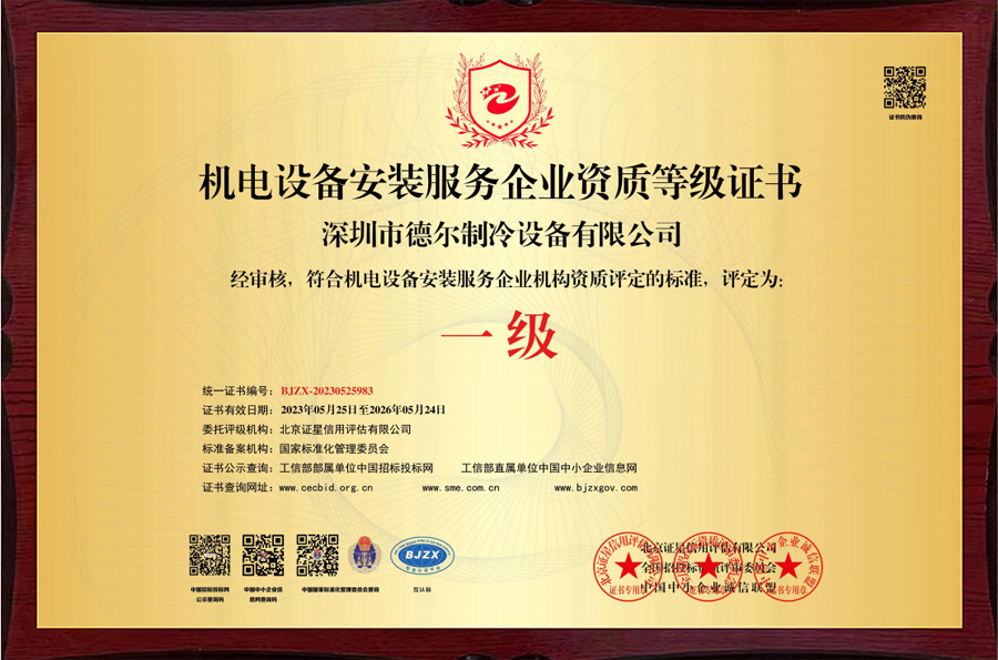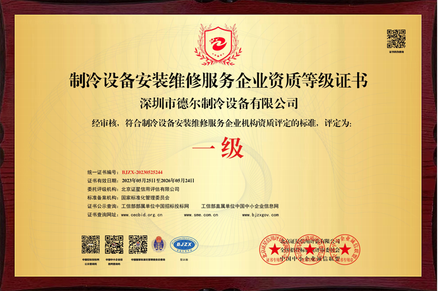 制冷設(shè)備安裝一級資質(zhì)證書