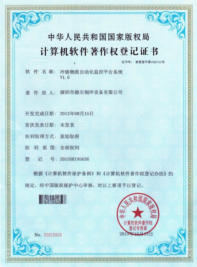 冷庫自動控制及遠(yuǎn)程監(jiān)控系統(tǒng) 軟件著作權(quán)證書