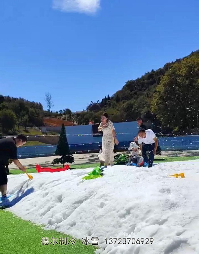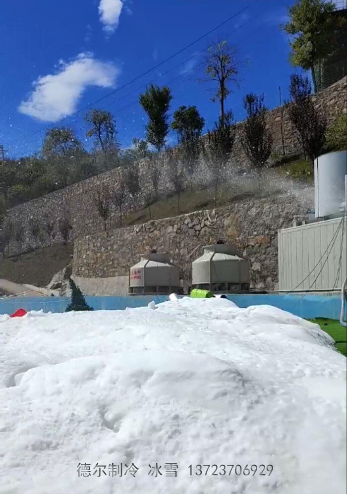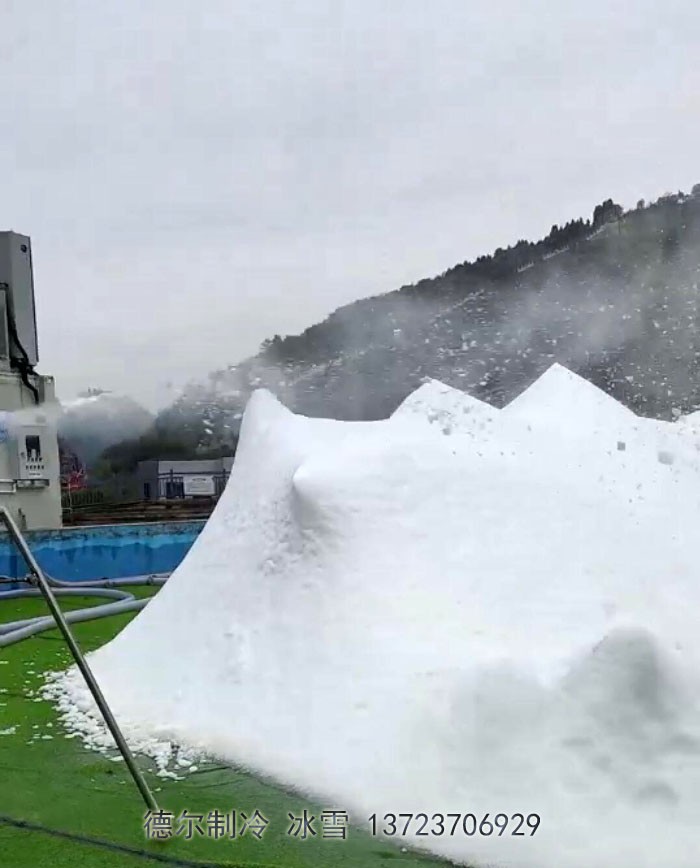 2022年國(guó)慶節(jié),湖北宜昌三峽龍泉湖度假村開(kāi)展了戲雪活動(dòng)。由德?tīng)栔评涔旧a(chǎn)的暴雪機(jī),造出一堆一堆巨大的雪山,為景區(qū)活動(dòng)提交了滿意的產(chǎn)品支持。