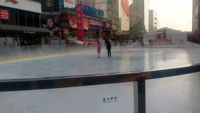 冰場(chǎng)位于大連商場(chǎng)門前的步行街