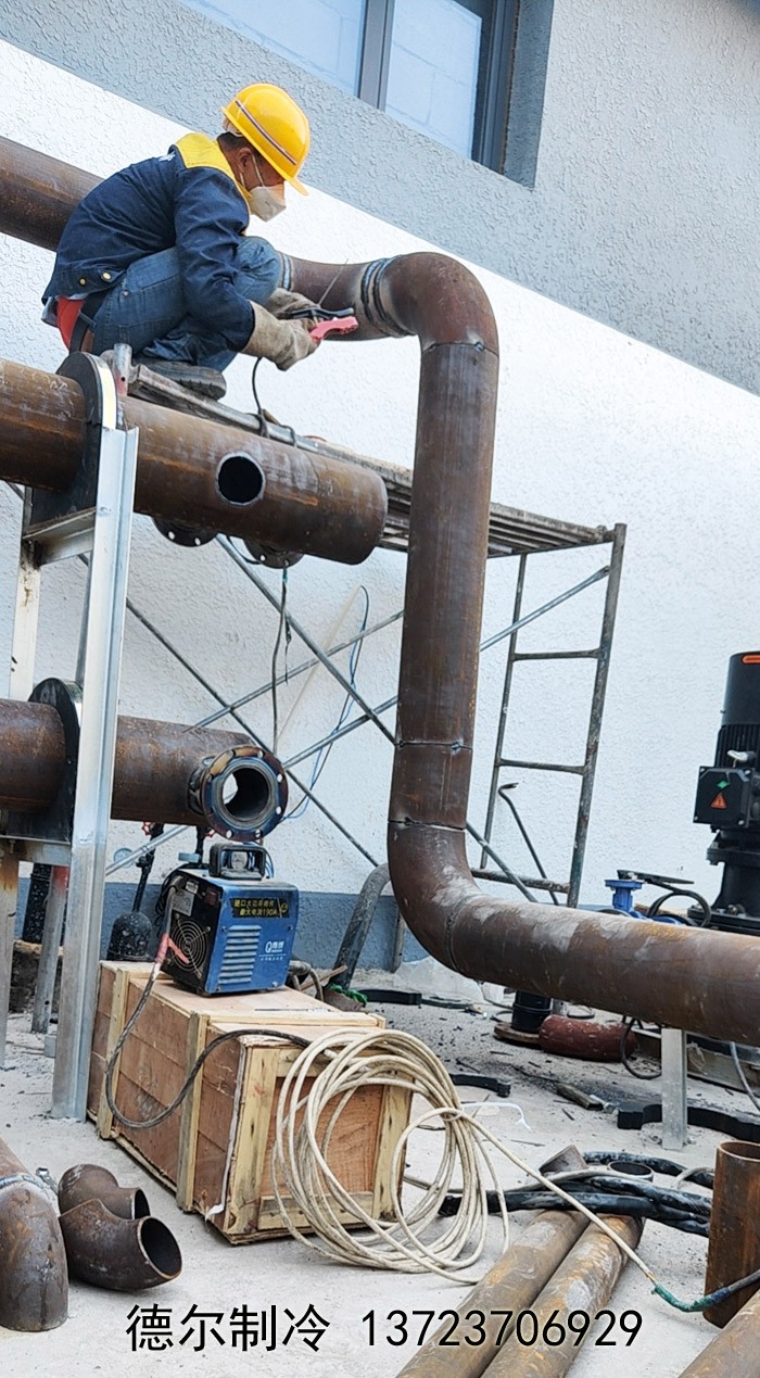 在下面的這張照片中,德爾制冷的工作人員的著裝,一眼就能看出北京3A冰上空間滑冰場是在特殊時(shí)期建設(shè)的。我們的工程施工人員正在進(jìn)行管道焊接與施工。